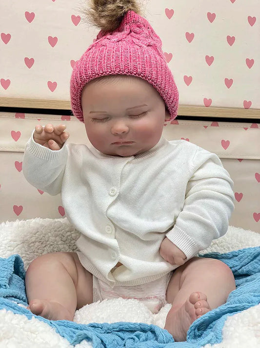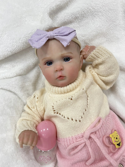 Elina – 20-Inch Adorable Reborn Baby Doll with Blue Eyes & Pink Knitted Outfit